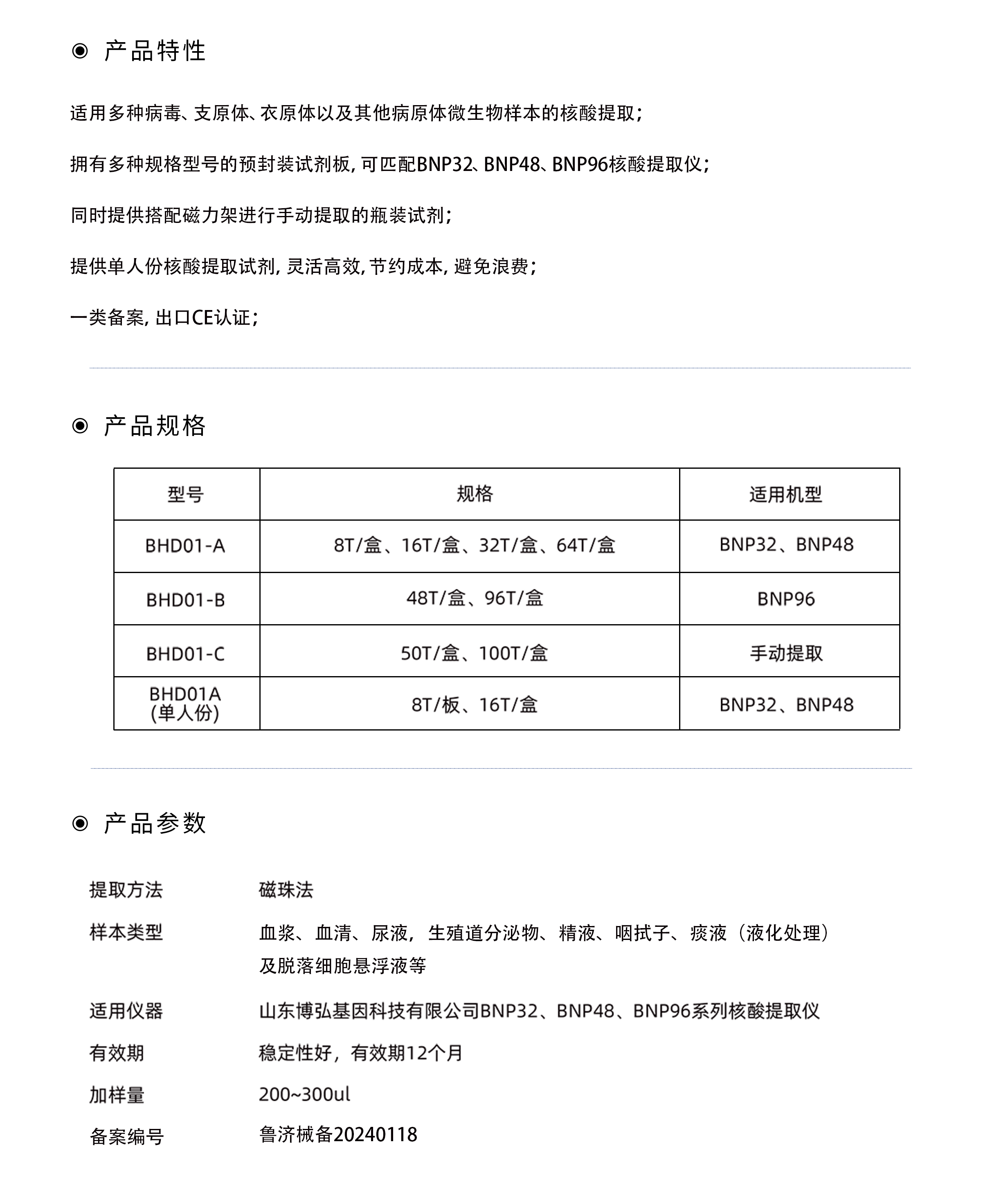 本試劑盒采用具有獨特分離作用的磁珠和緩沖液系統,快速、高度敏感,有效的從各種樣本類型中提取 DNA 和 RNA。以胍鹽、表面活性劑和蛋白酶破壞病毒外殼將核酸釋放在緩沖體系中,加入特殊包被的磁珠,磁珠在緩沖體系下對目的核酸具有很強的親和力,而當條件改變時,磁珠釋放吸附的核酸洗滌體系可以除去溶液中存在的蛋白、小分子等雜質,能夠達到快速分離純化核酸的目的,且不使用氯仿等有毒試劑。